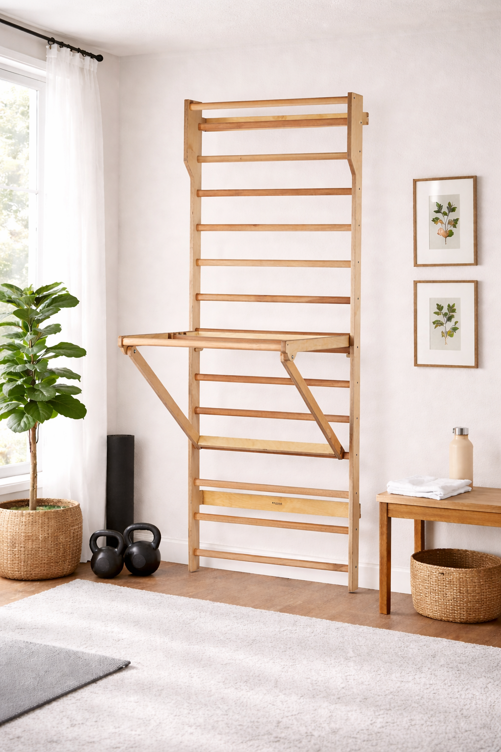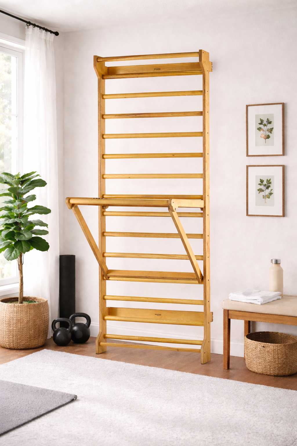 Get your complete eco-friendly personal training station in one package! Our wooden Swedish ladder wall set includes Swedish ladder stall bars with our adjustable pull-up dip bar (rings not included); SAVE 5% off the individual prices. Click on the below links to the Product Pages for more details and visit our FAQ page for installation videos. Assembly required.