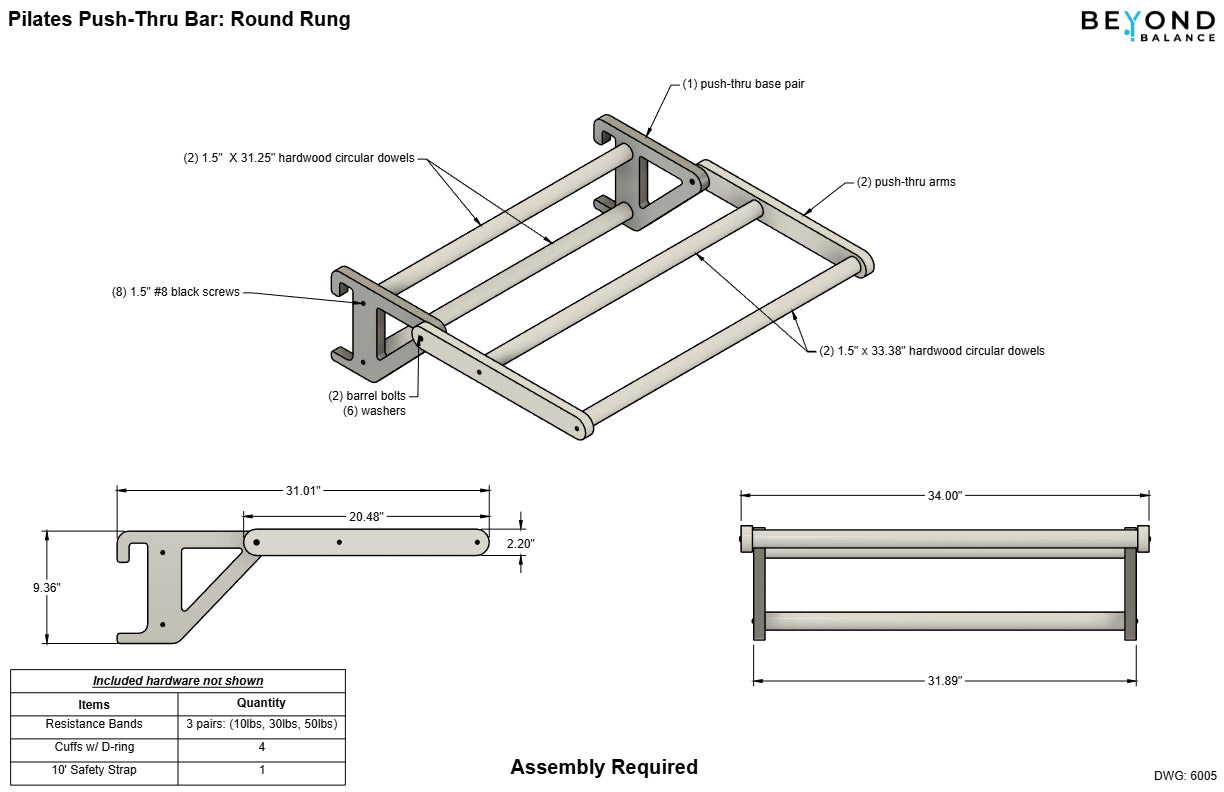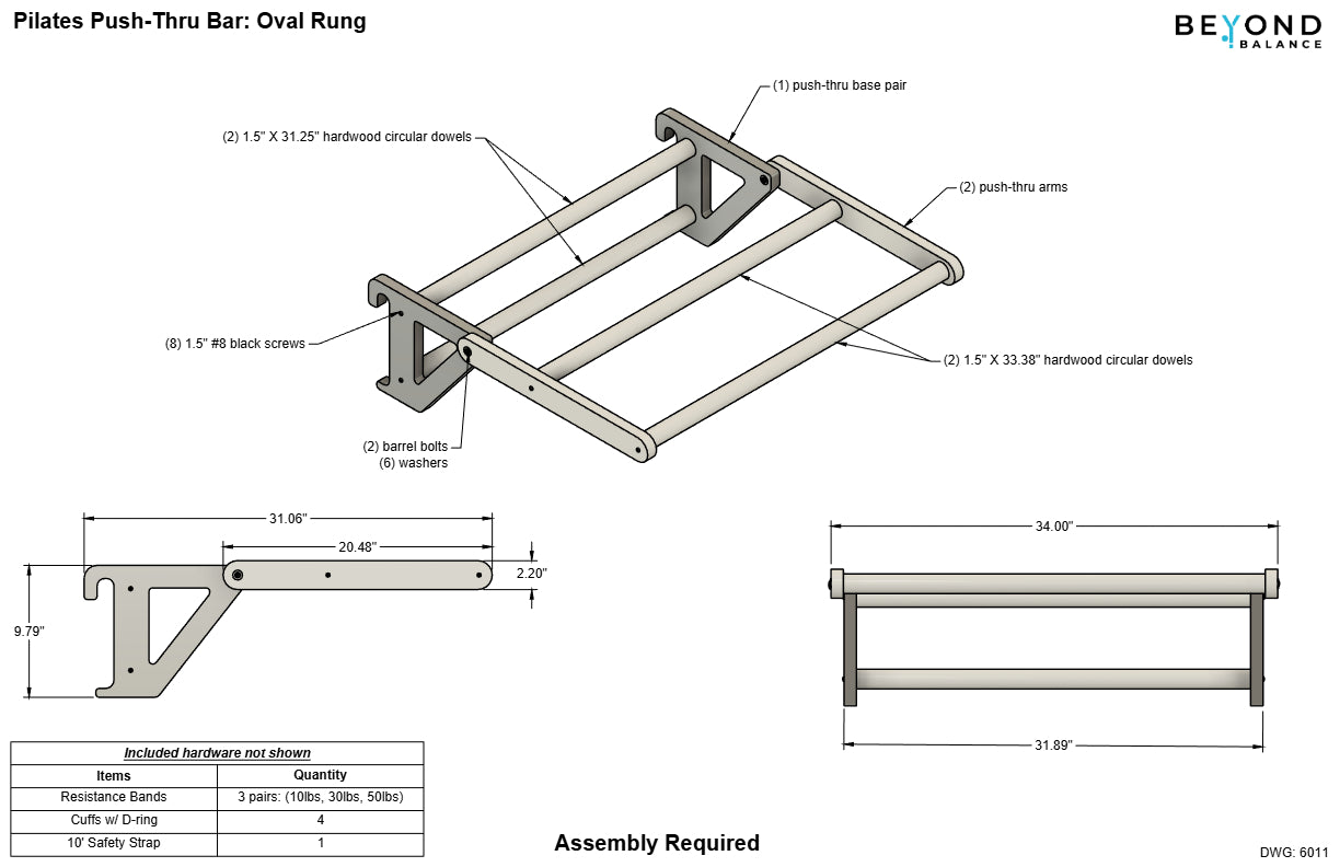 - One Push Through Bar Attachment: 1.5" dia rungs (Poplar or Beech). NOTE: All rungs are round for the push thru bar. Select Oval or Round to match your stall bar rungs to assure we supply the correct attachment.