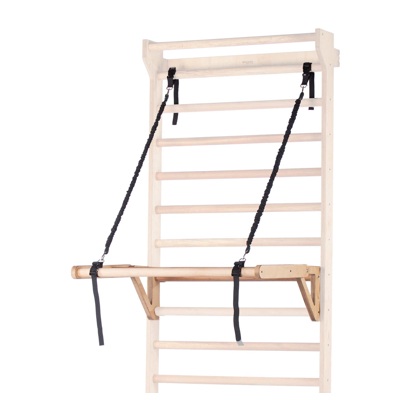 Wooden stall bars are the most versatile and beneficial of all the calisthenics and body weight training equipment. Our Pilates push through bar attaches to our Swedish Ladder to provide additional mobility training.